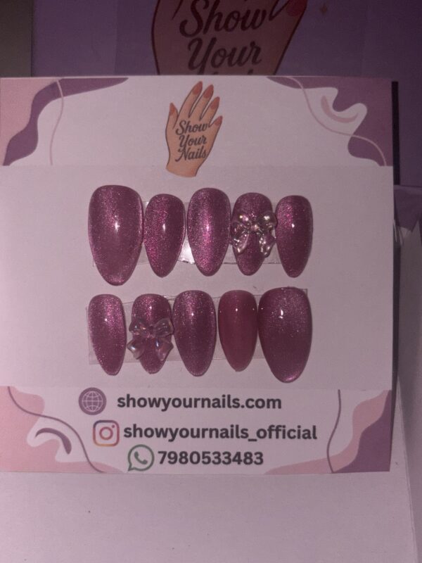 A soft princess-pink shimmer press-on set featuring adorable 3D bow charms β giving your nails a cute, luxurious and feminine look that instantly stands out.